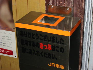 電車から降りた人はこの箱に きっぷを入れます。 足柄駅だけでなく、他の無人駅のい くつかにも設置してあります。 |