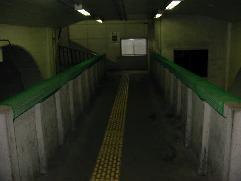 | 鶴見行きホームに行くには、この狭くて暗い通路を渡って行かなければいけません。 | 下りホームです。 |